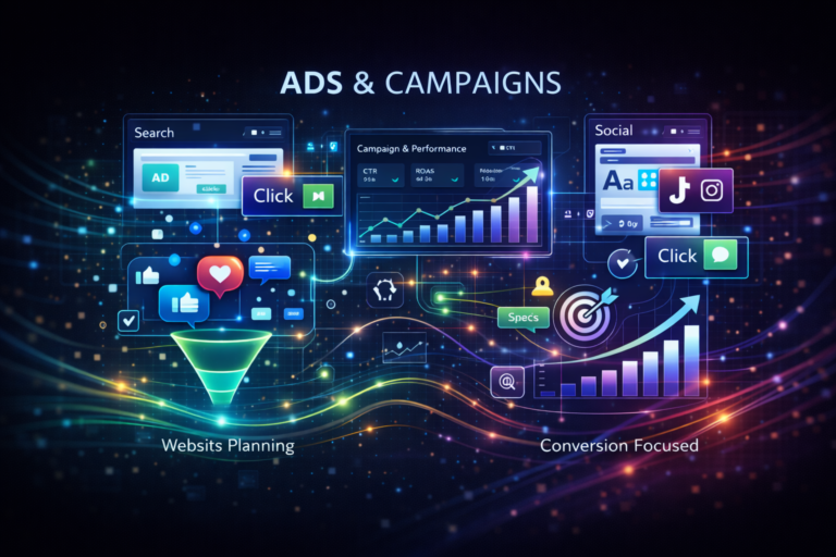 Building, launching, and optimizing paid advertising campaigns across platforms such as Google Ads, YouTube Ads, LinkedIn Ads, and Meta Ads (Facebook & Instagram) is the main focus of our Ads Campaign Management service. Whether it’s lead generation, eCommerce sales, app installs, or brand awareness, we match every campaign with your company’s objectives. We make sure your ad expenditure yields the most return on investment and long-term online growth by fusing strategy, creativity, and analytics.
